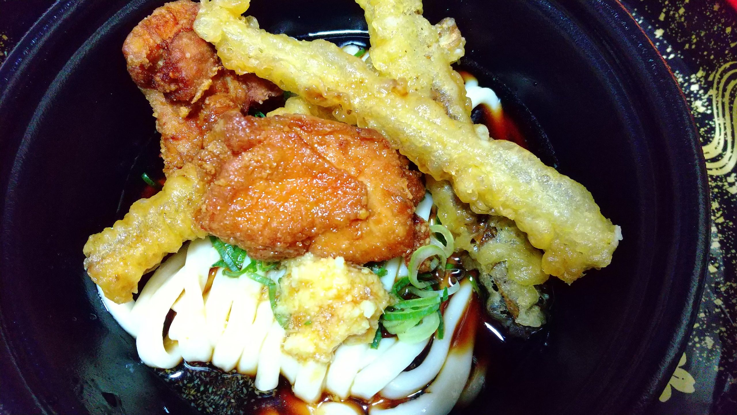 はい!このサクサク感をキープするためなのか天ぷらと唐揚げは別容器で食べる直前に盛り付けられるのでいい感じです。唐揚げもごぼ天もおいしいです。おろし生姜もついててあっさりいただけました。何より麺がおいしいですね。